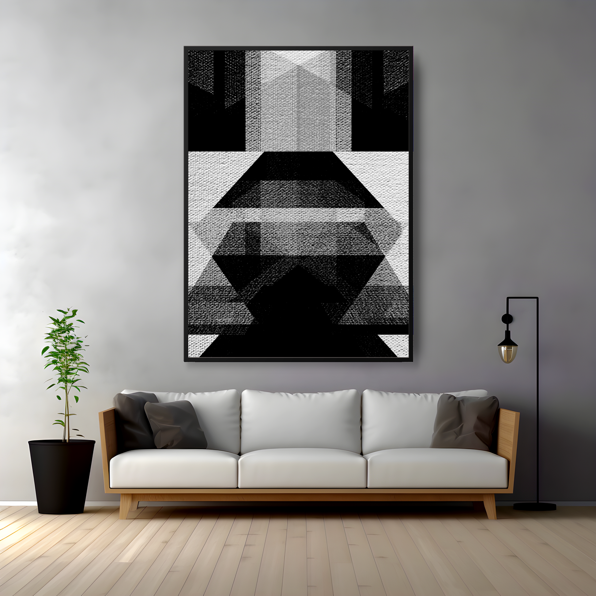 "Monochrome Kimono" stands as a masterful exploration of geometric abstraction, where stark contrasts and precise architectural forms coalesce into a contemporary interpretation of traditional Japanese aesthetics. The artist's sophisticated manipulation of positive and negative space centers on a commanding hexagonal motif, from which radiating trapezoids and planes suggest the elegant folds of a kimono rendered in modernist vocabulary. This museum-quality limited edition piece demonstrates exceptional technical precision through its nuanced grayscale transitions and distinctive textural qualities, achieving a remarkable balance between Constructivist rigidity and Eastern fluidity. The work's careful consideration of form and void, executed through contemporary production techniques on premium substrate, creates a compelling dialogue between traditional craftsmanship and modern artistic expression.