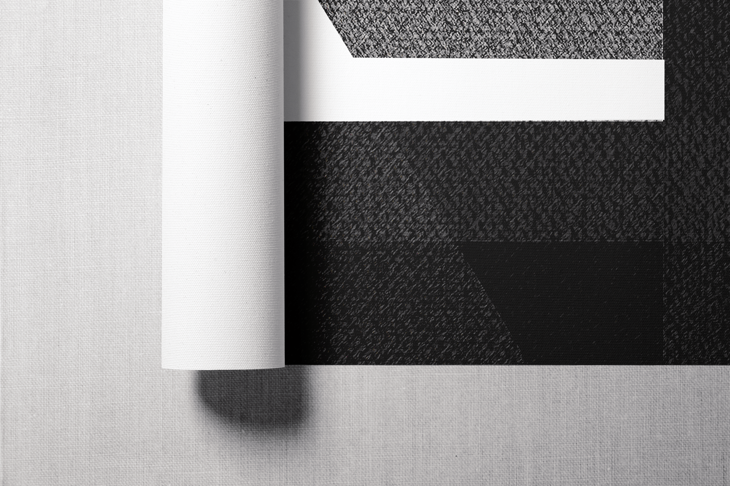 Space & Form No.2 from the Resonating Structure collection is a compelling display of the artist's ability to invoke depth through minimalistic design. This piece strikes a commanding presence, its bold monochromatic shapes creating a stark interplay of contrast and negative space. Here, the artist employs a palette of black, white, and greys to sculpt the illusion of volume and space. The composition is both geometrically rigorous and intriguingly imprecise, suggesting a fluidity of movement within its rigid bounds. The texture applied throughout the piece gives it a tactile quality, as if the shapes are carved out of the canvas itself. 'Space & Form No.2' is a masterful exercise in restraint and intentionality, where the artist uses the absence of color to emphasize form and shadow, inviting the viewer to fill the voids with personal interpretation. The artwork is a meditation on the essence of form and the space it occupies, both physically and metaphorically.